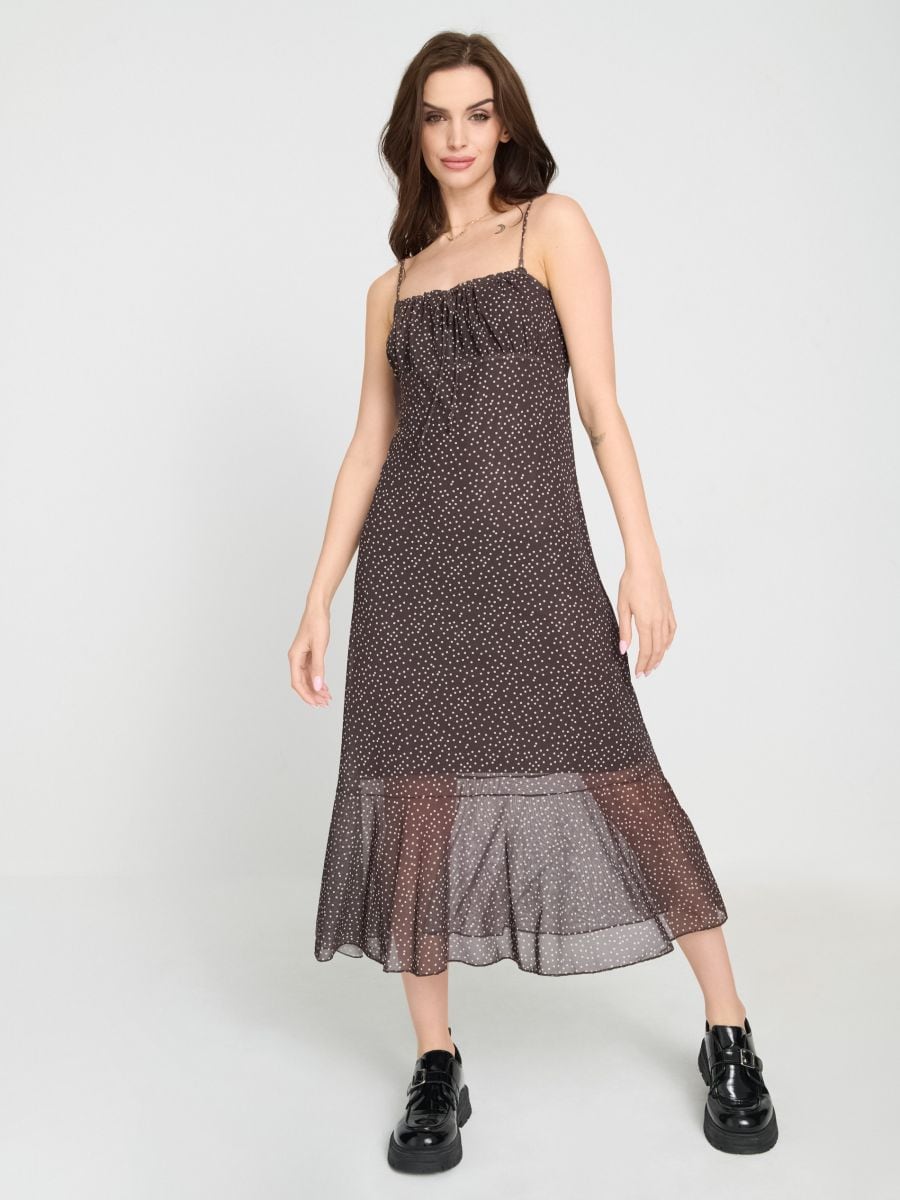 Φόρεμα midi με τιράντες και διακοσμητικό ντεκολτέ