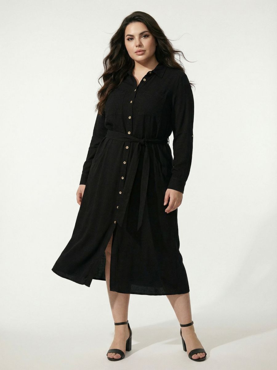 Φόρεμα-πουκάμισο από βισκόζη με μείγμα λινού