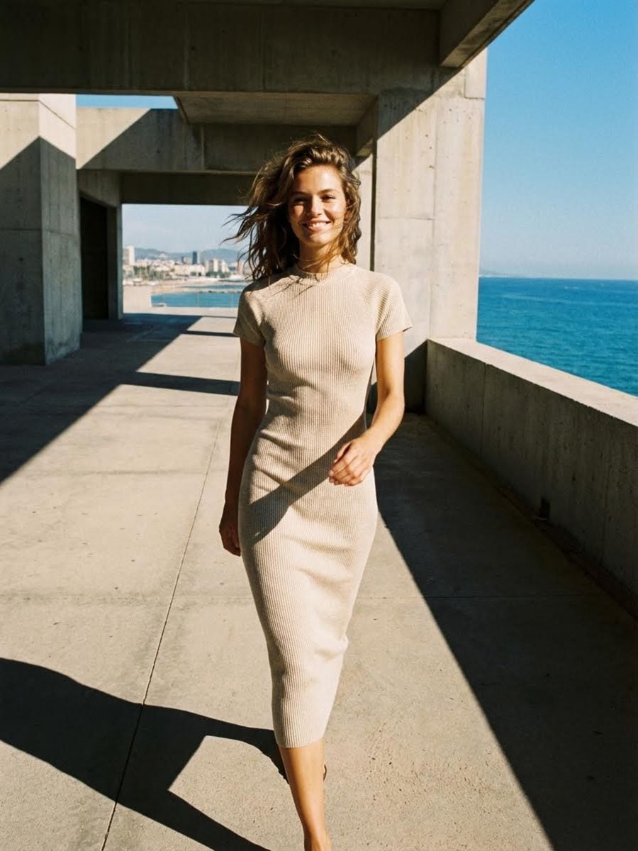 Πλεκτό midi φόρεμα με κοντά μανίκια