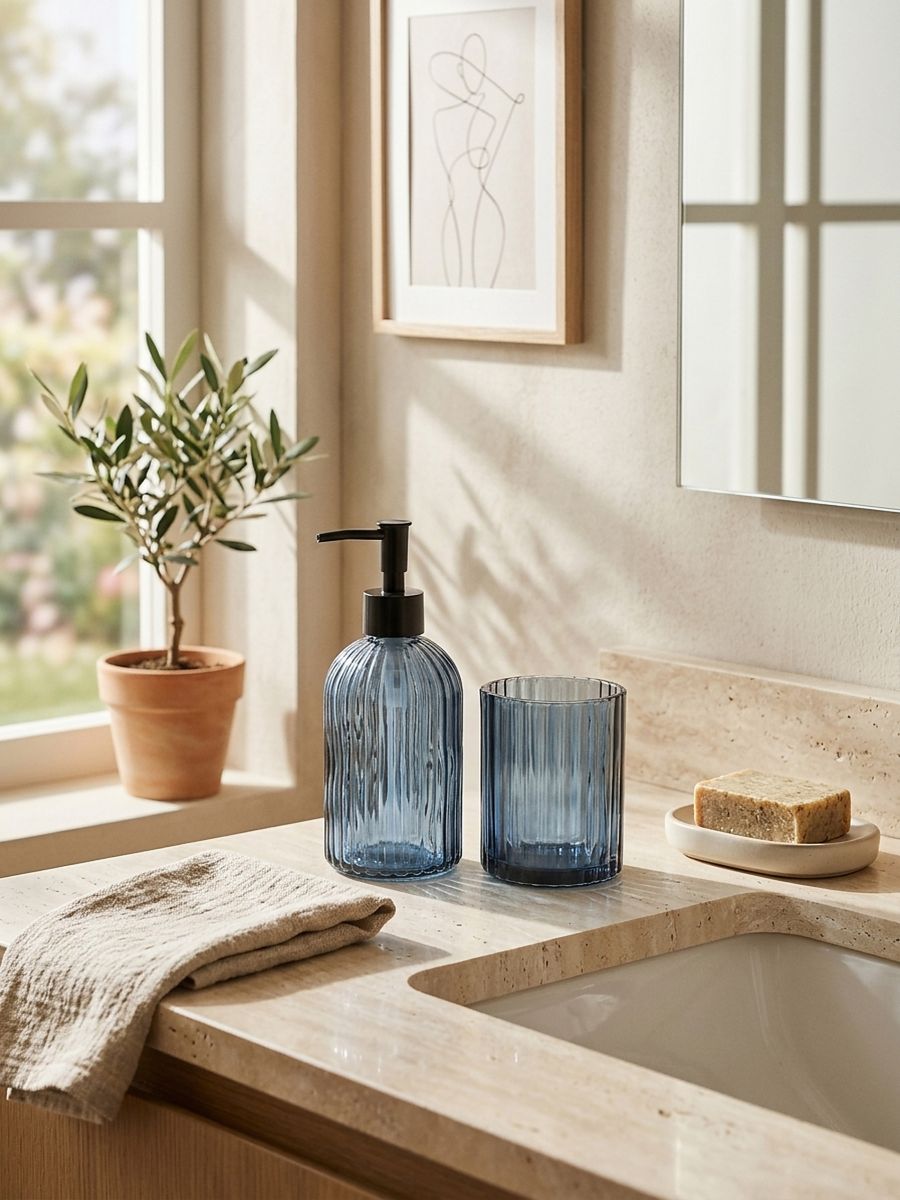 Σετ: Διανομέας σαπουνιού και ποτήρι για οδοντόβουρτσες