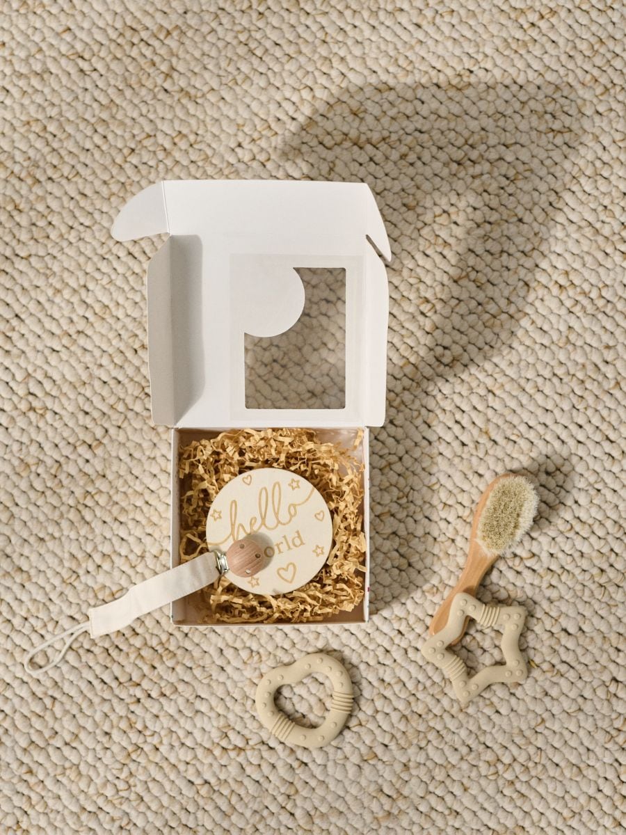 Σετ δώρου: θήκη πιπίλας, μασητικό, οδοντόβουρτσα και αξεσουάρ φωτογράφισης