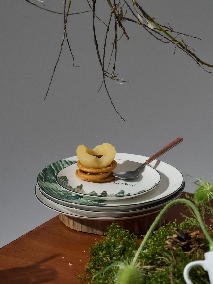 Σετ χειμωνιάτικων κεραμικών πιάτων με σχέδιο δάσους, 2 τεμάχια