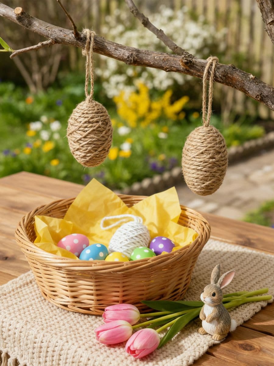 Σετ πασχαλινών διακοσμητικών αυγών από κορδόνι 6 τμχ