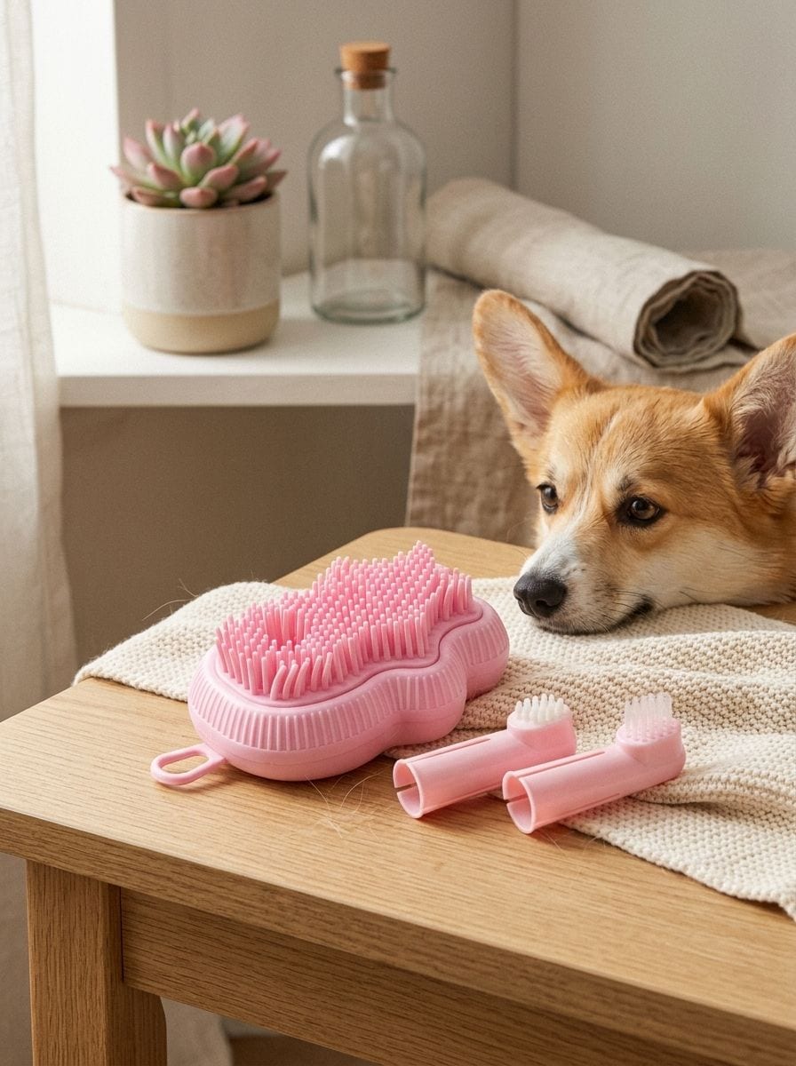 Σετ: Βούρτσα μασάζ με προστατευτικά δαχτυλιδιών για τον καθαρισμό των δοντιών σκύλων και γάτων