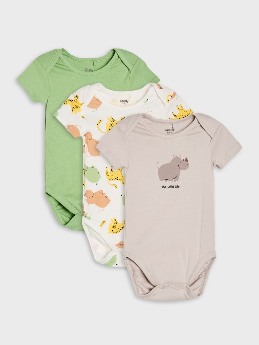 Βαμβακερά κορμάκια με μοτίβο ζώων σαφάρι 3 pack