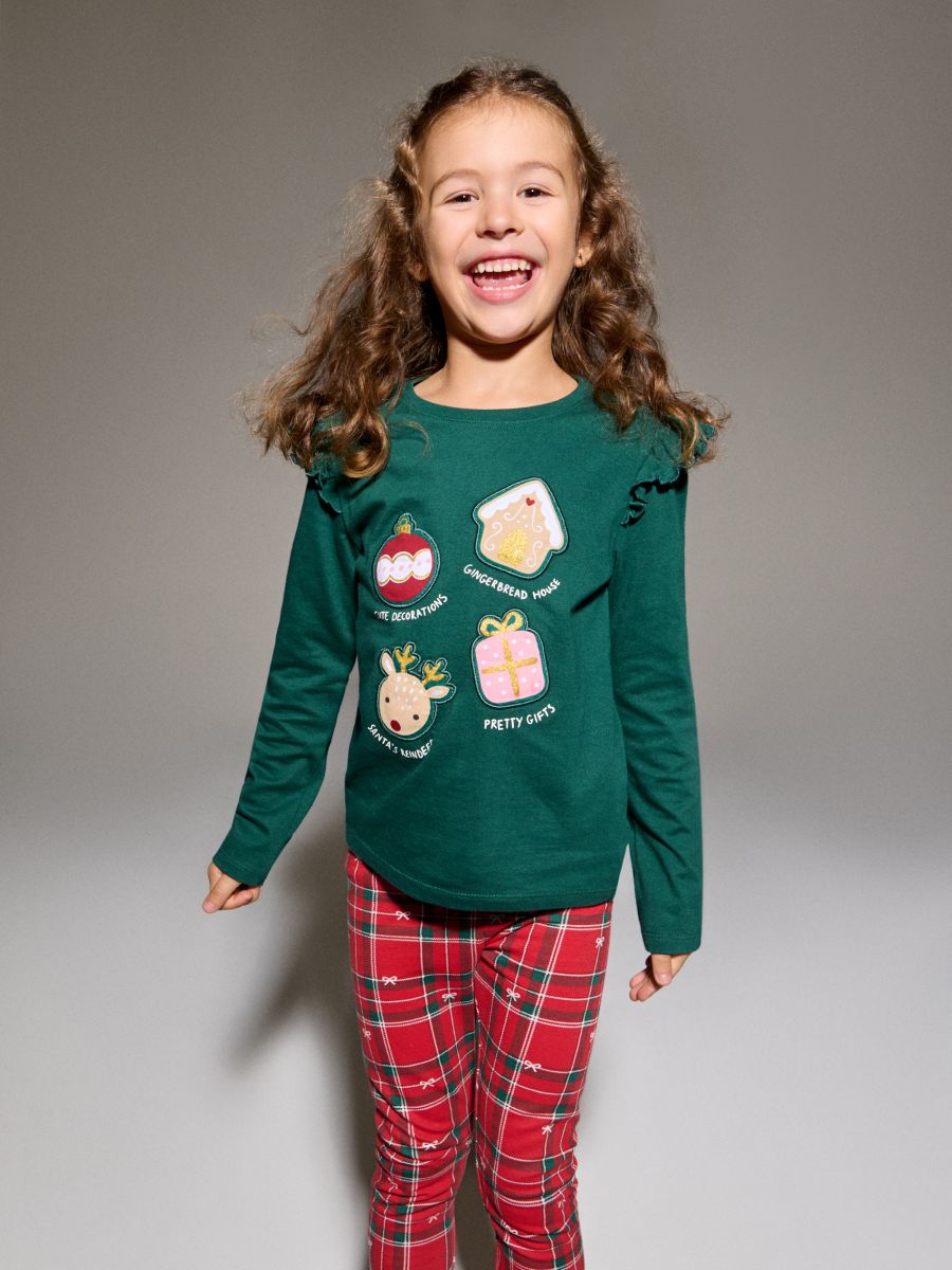 Βαμβακερή μπλούζα με στάμπα στολίδια και gingerbread