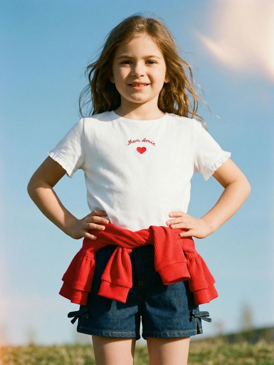 Βαμβακερό μπλουζάκι με κέντημα και βολάν