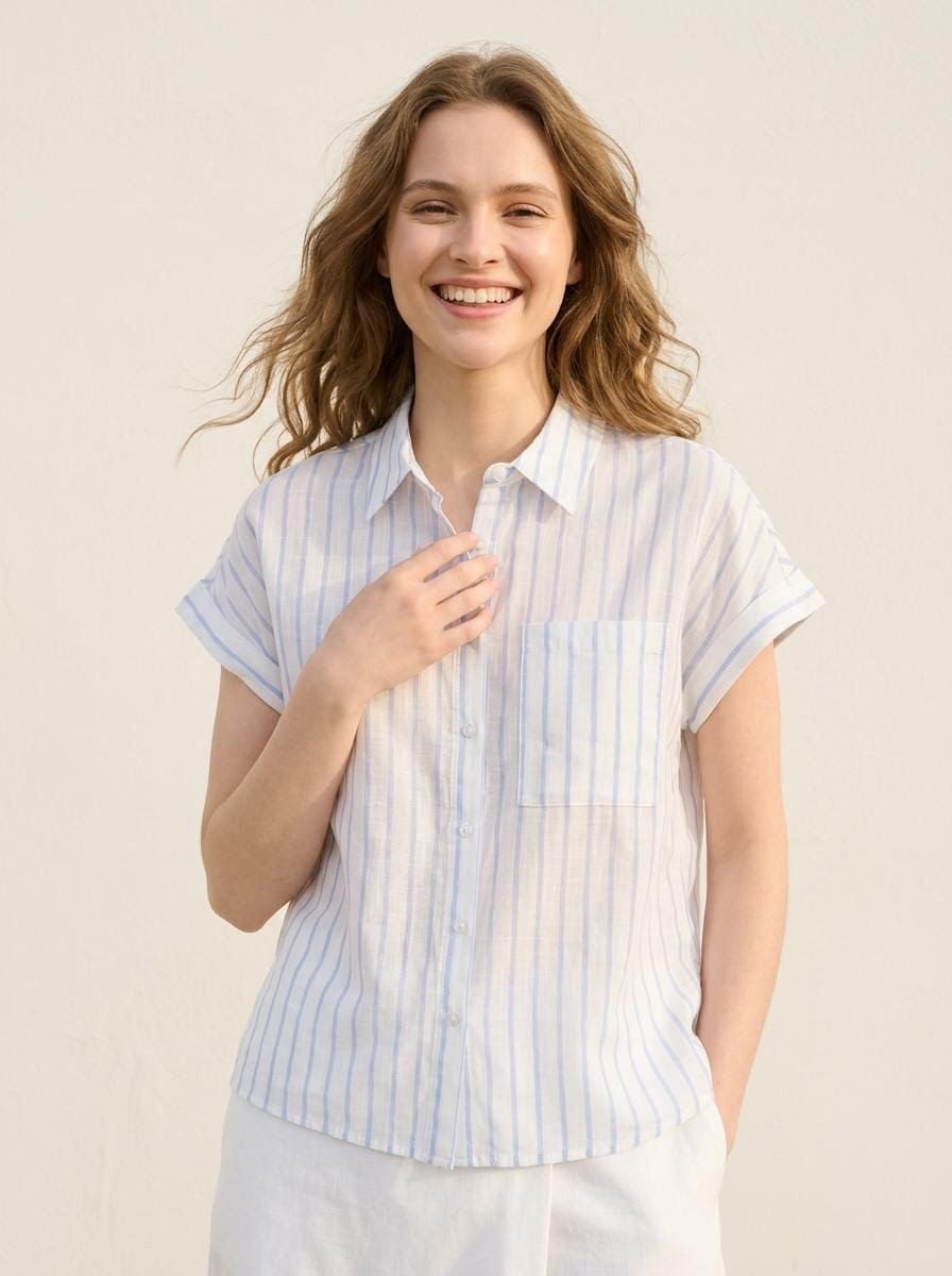 Βαμβακερό πουκάμισο με κοντά μανίκια