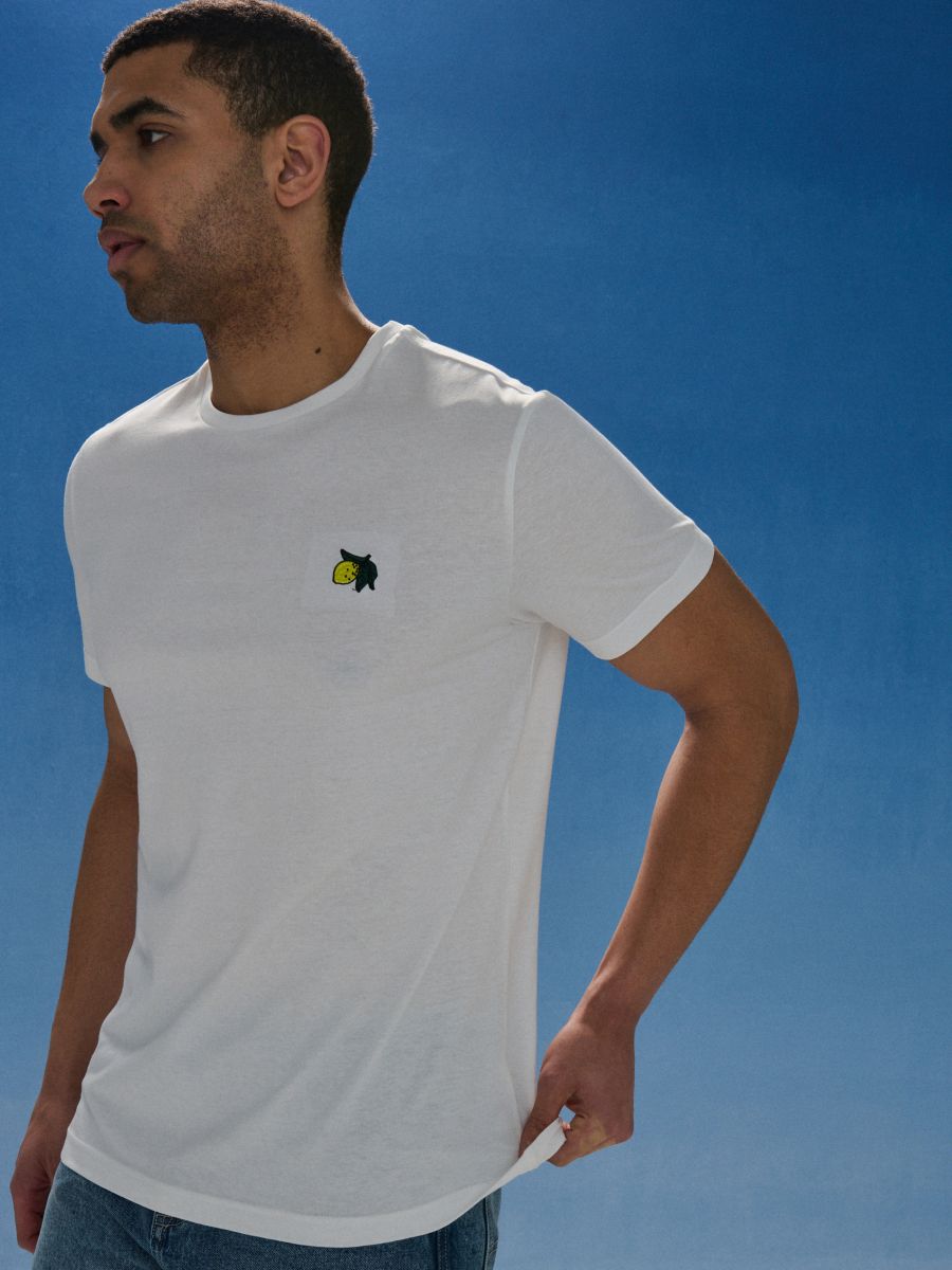 Βαμβακερό T-shirt με κέντημα σε σχήμα λεμονιού
