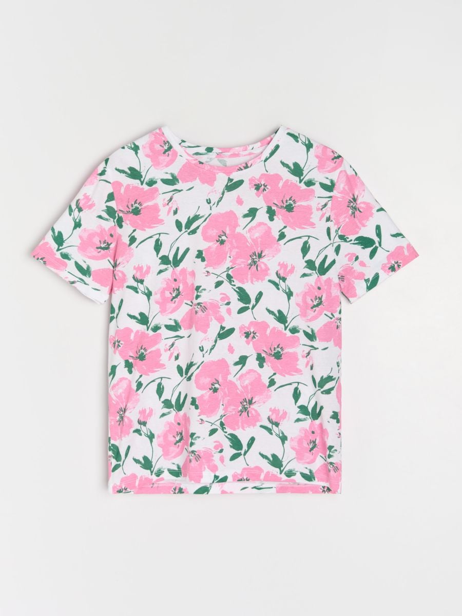 Βαμβακερό T-shirt με λουλουδάτο μοτίβο
