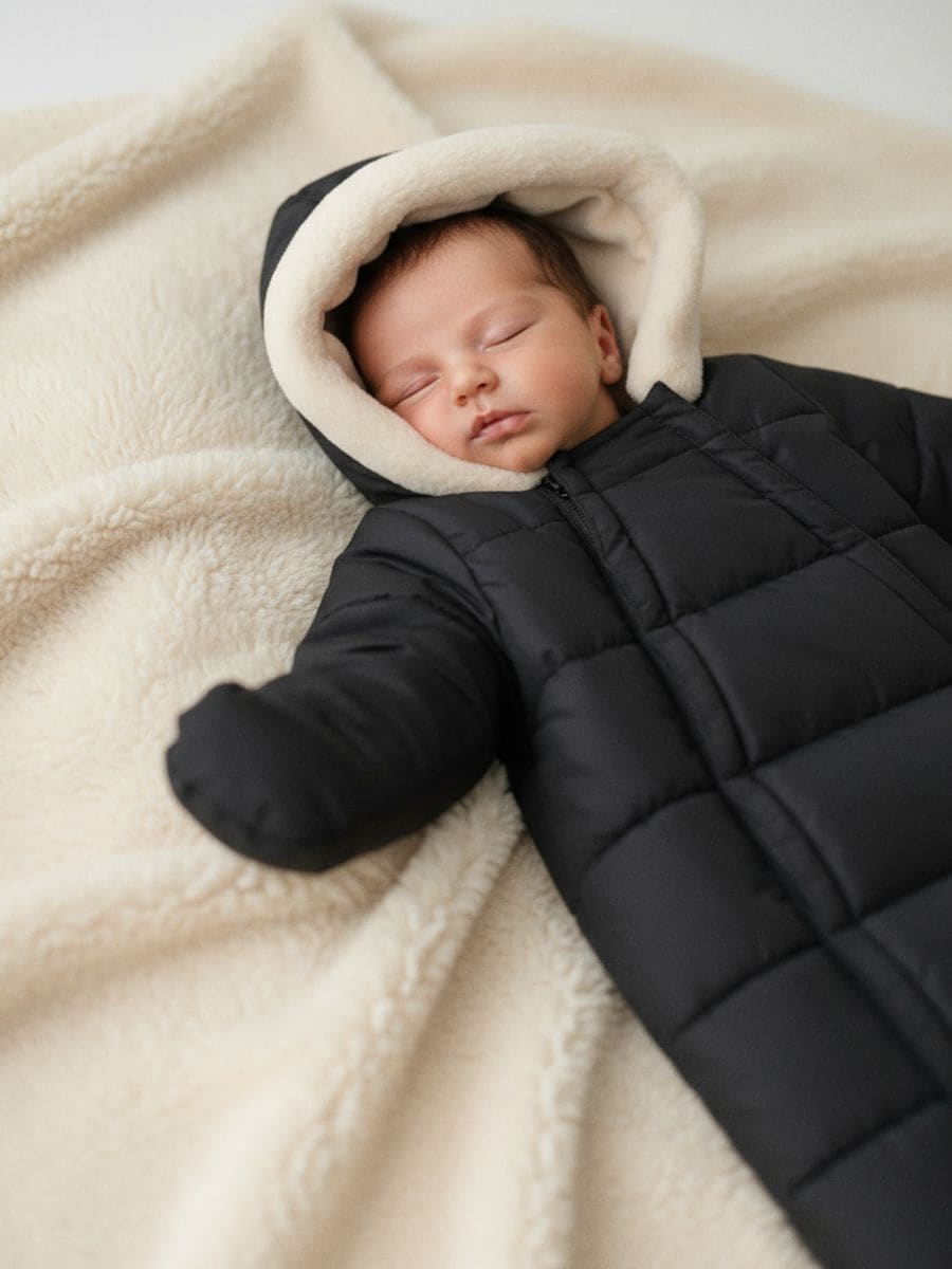 Βρεφικός υπνόσακος με fleece και κουκούλα διακοσμημένη με συνθετική γούνα