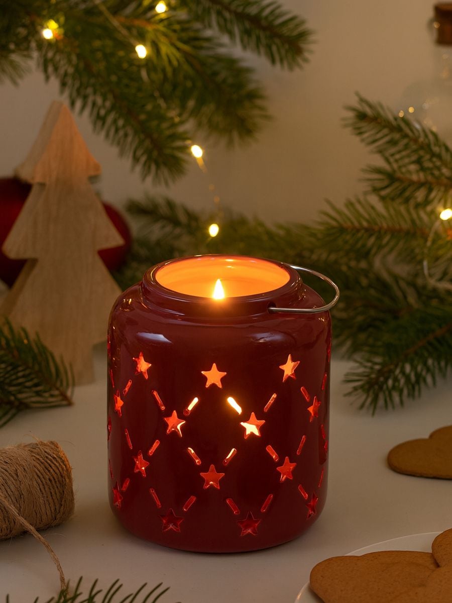 Božićni keramički lampion s izrezima u obliku zvjezdica