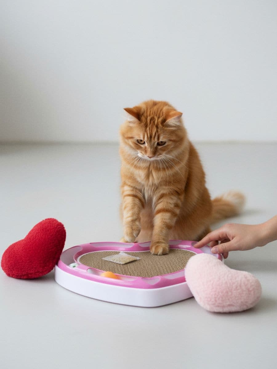 Giocattolo per gatti con palline e tiragraffi a forma di cuore