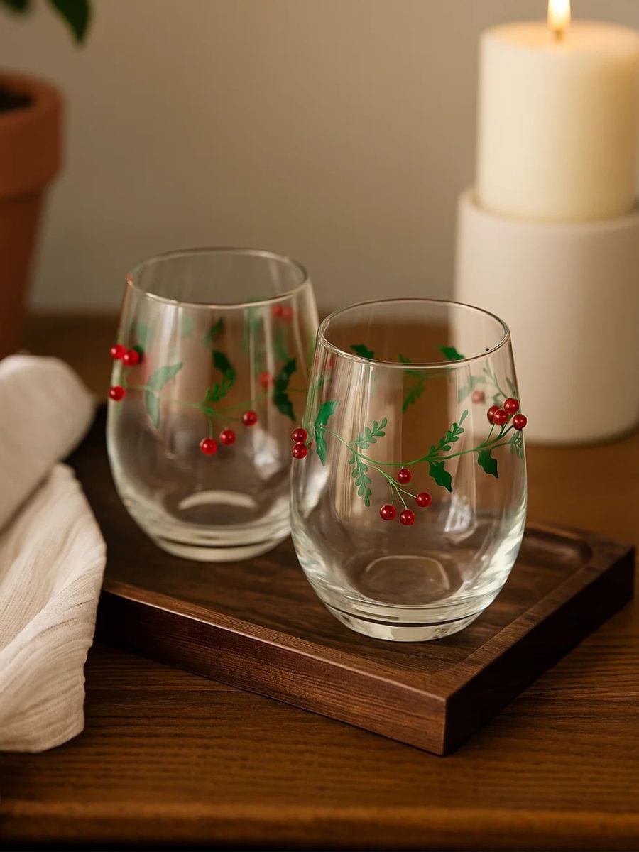 Glāzes ar Ziemassvētku motīvu – magoņu zari 2 pack