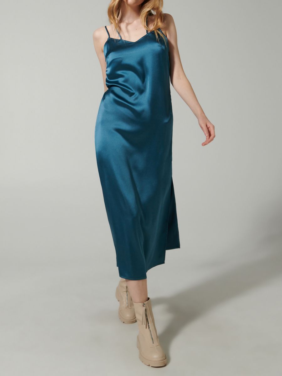 Satīna midi kleita ar lencēm un V veida izgriezumu