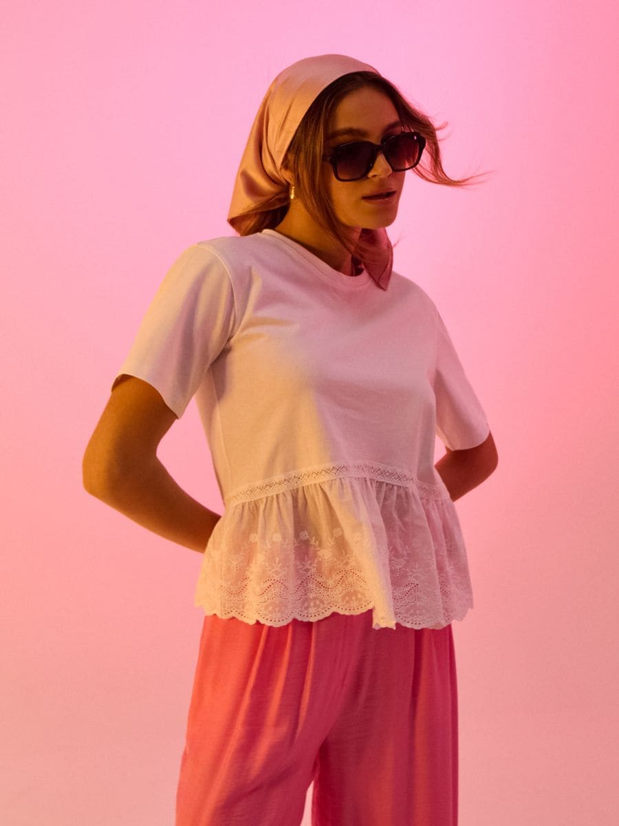 Bawełniana bluzka z koronkowym zdobieniem