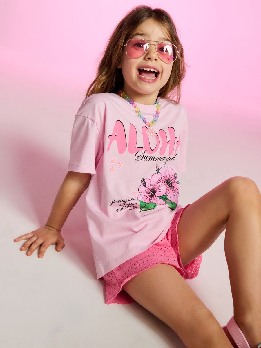 Bawełniana koszulka z nadrukiem kwiatowym