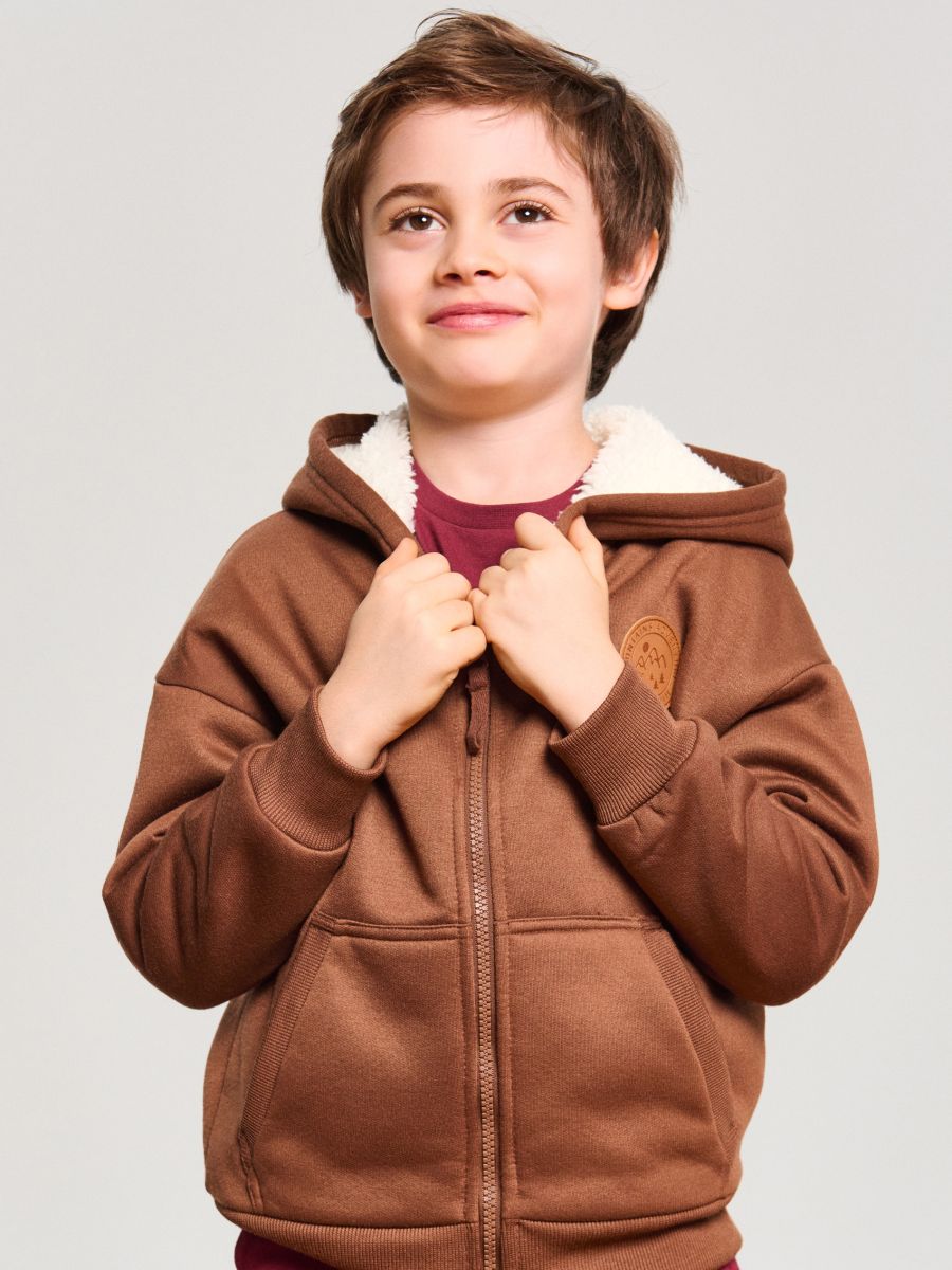 Cieplejsza bluza z kapturem z ozdobną naszywką