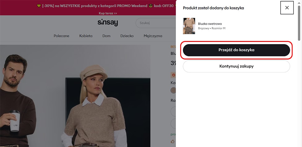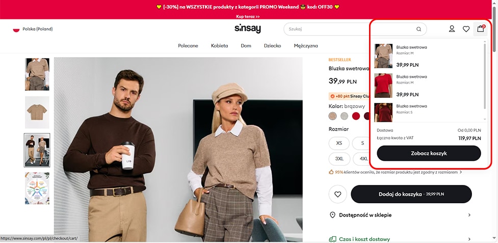 3. Po dodaniu produktu do koszyka w prawym górnym rogu ekranu rozwija się jego podgląd, w którym możesz zobaczyć znajdujące się w nim produkty.