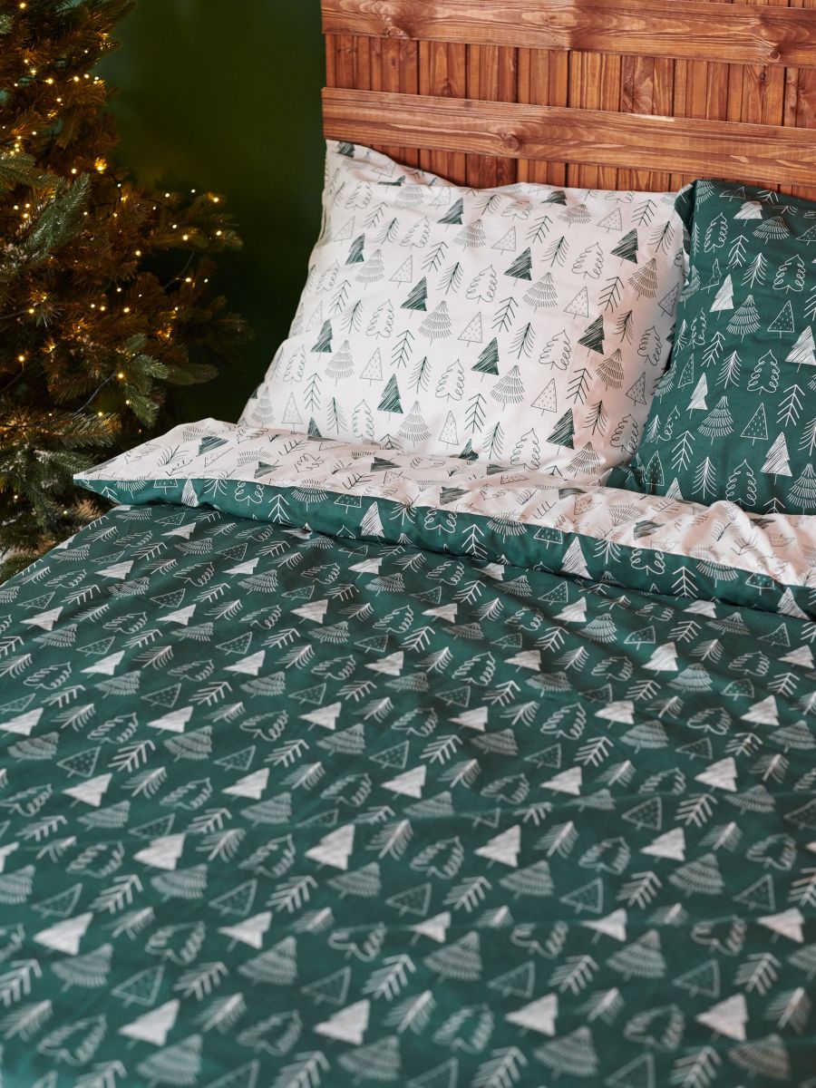 Komplet bawełnianej pościeli ze wzorem w choinki