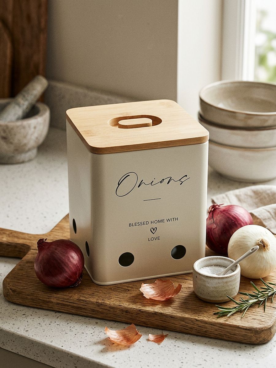 Pojemnik na cebulę z bambusową pokrywką