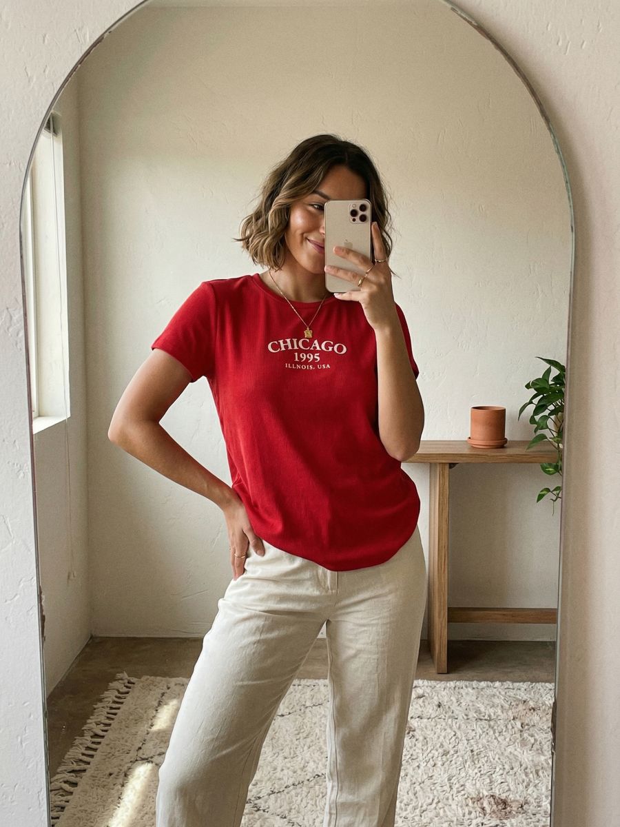 Prążkowana koszulka z napisem