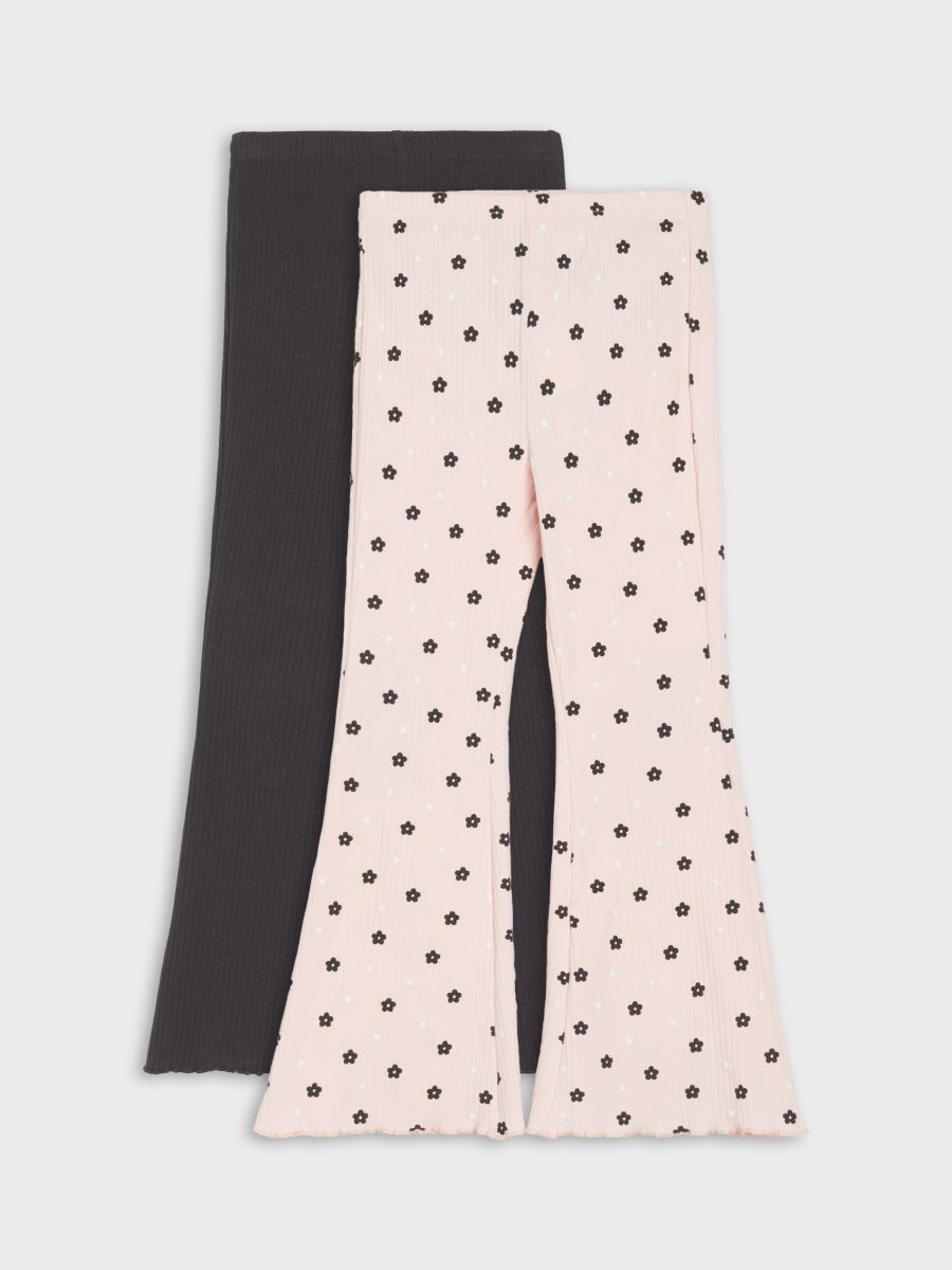 Prążkowane spodnie flare ze wzorkiem 2 pack