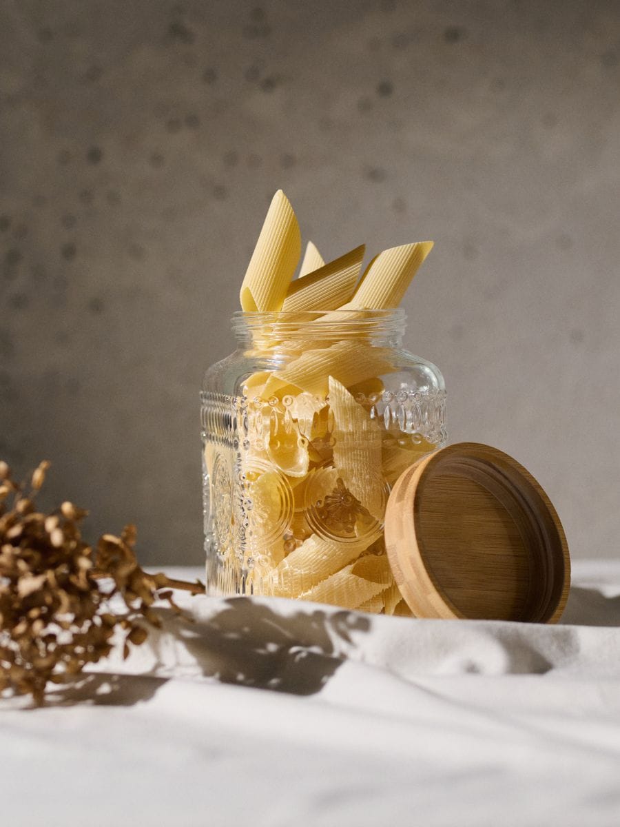 Słoik na żywność z pokrywką i tłoczonym wzorem
