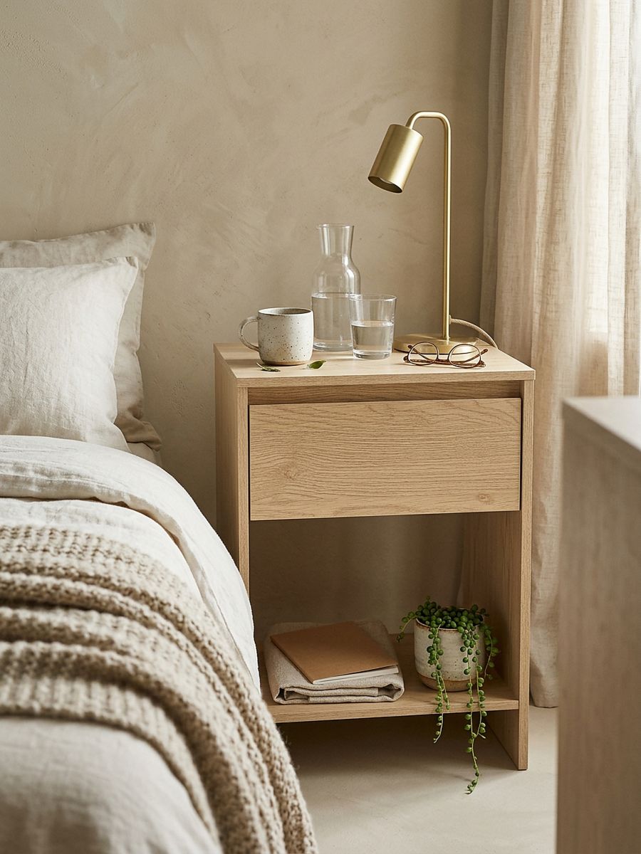 Stolik z szufladą i półką