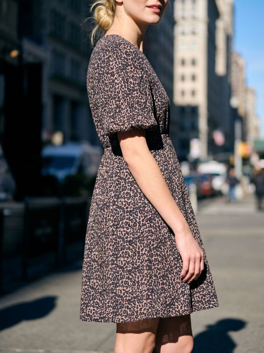 Sukienka mini z bufiastymi rękawami w panterkę