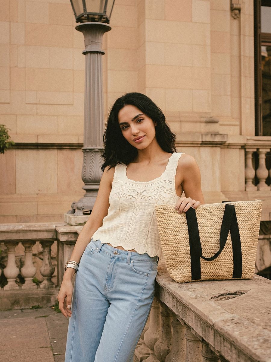 Swetrowa ażurowa bluzka na ramiączkach