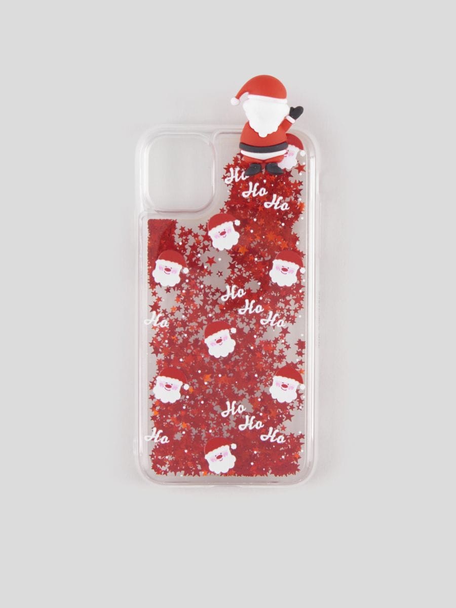 Świąteczne etui iPhone 11/XR na telefon z brokatem i figurką Mikołaja