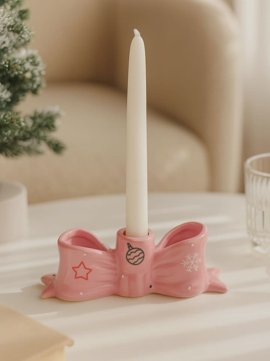 Świąteczny świecznik z kamionki w kształcie kokardy