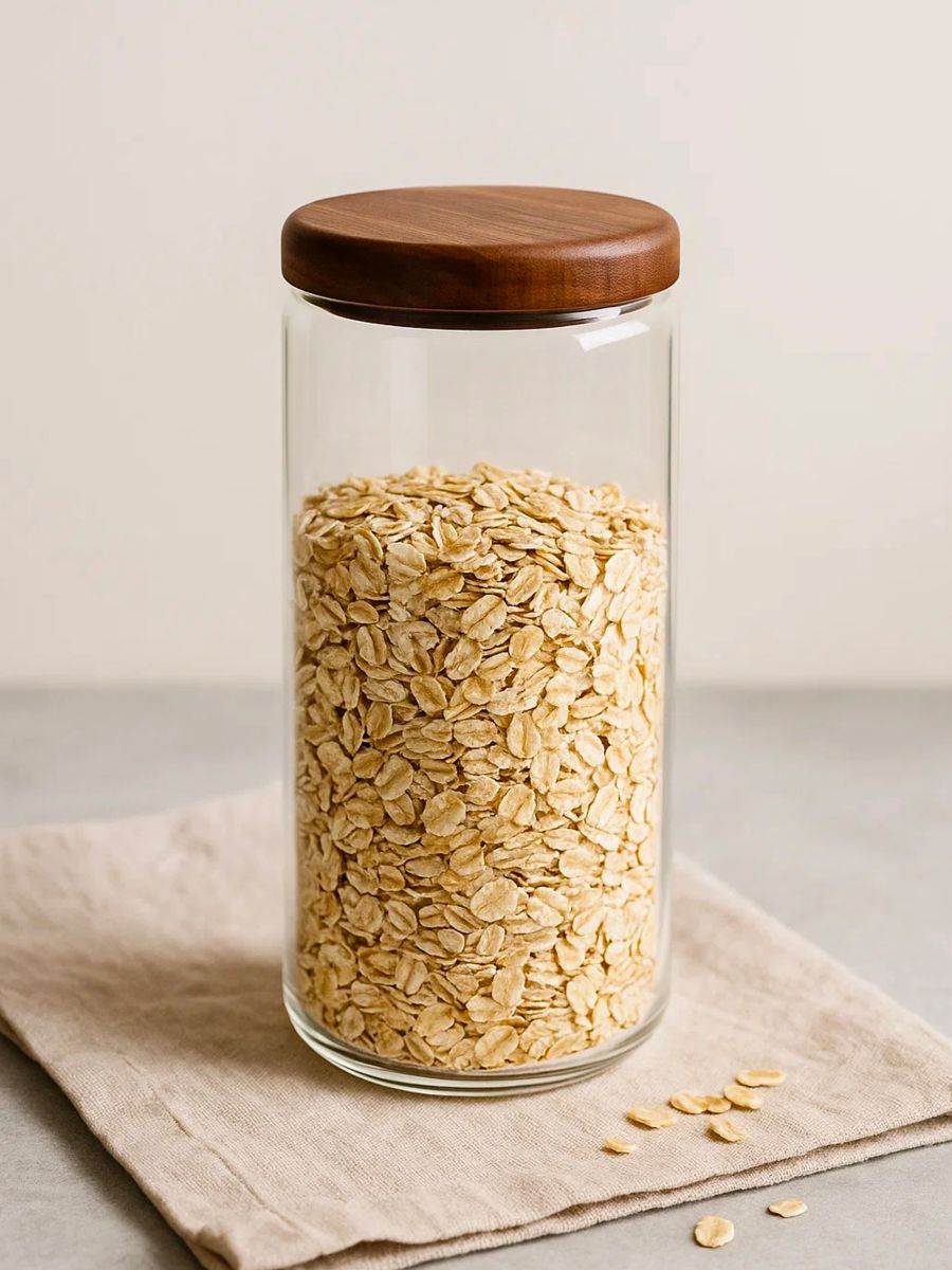 Szklany pojemnik na żywność z drewnianą pokrywką