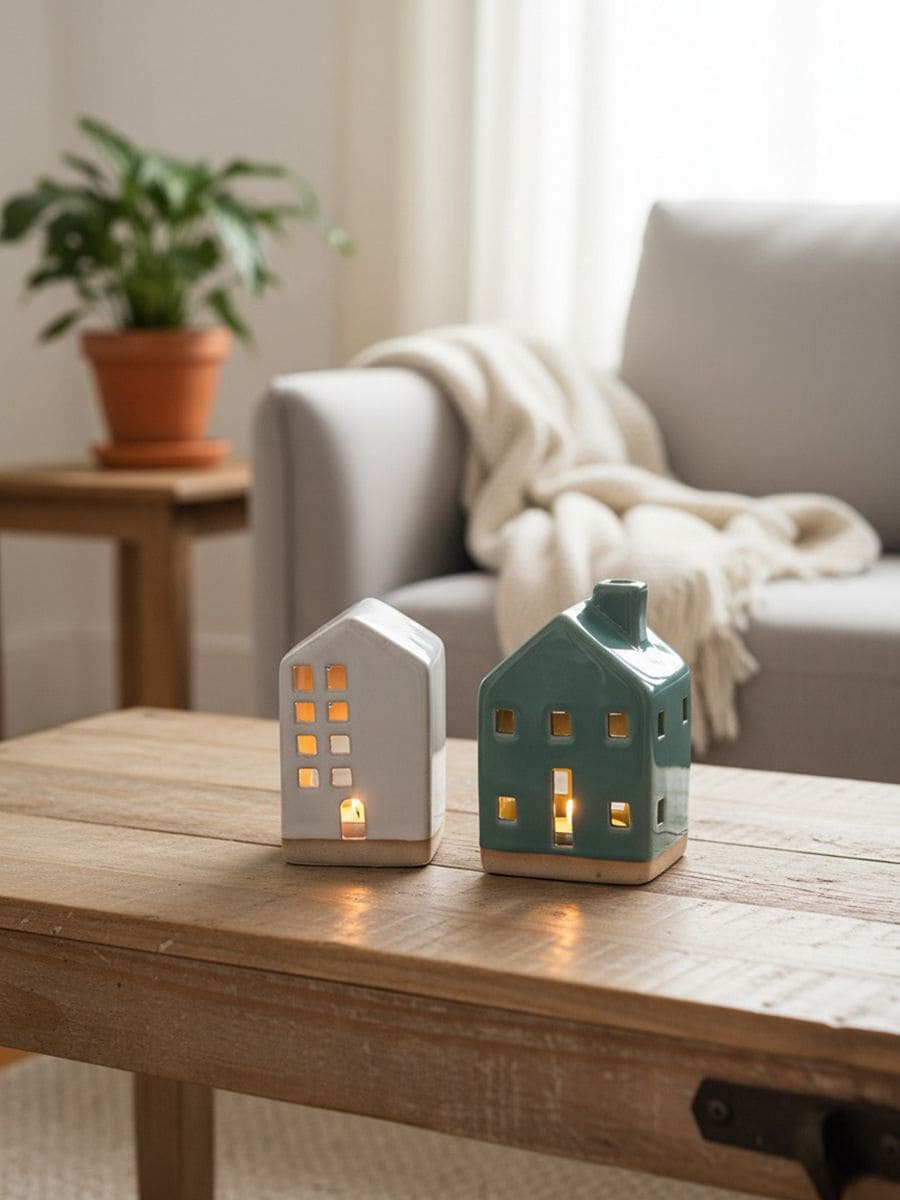 Zestaw świątecznych świeczników ceramicznych w kształcie domów 2 pack