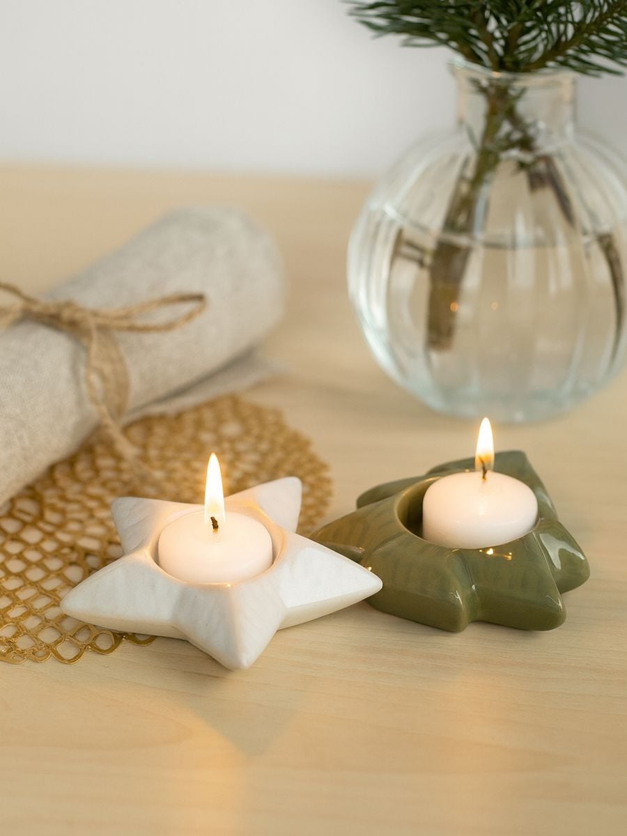 Zestaw świątecznych świeczników ceramicznych w kształcie gwiazdki i choinki 2 pack