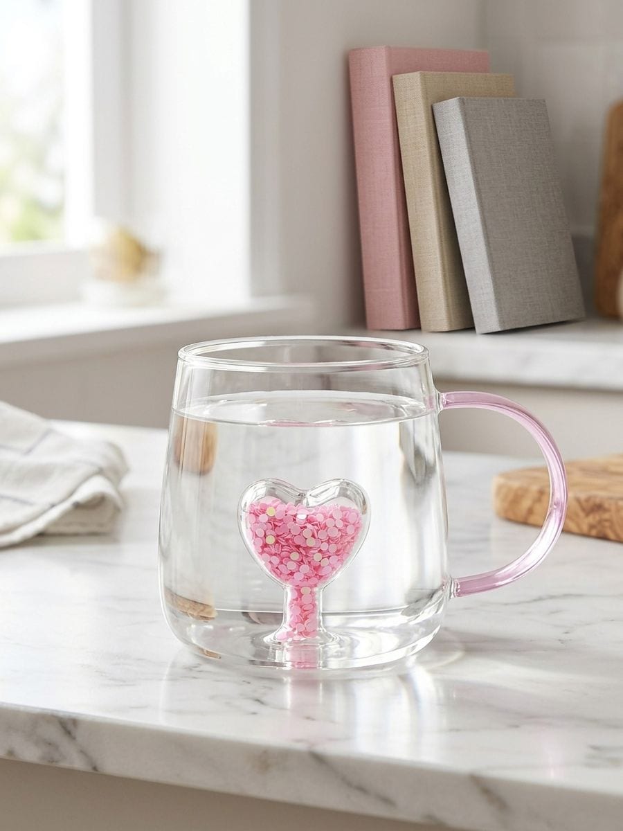 Cană din sticlă cu motiv de Valentine's