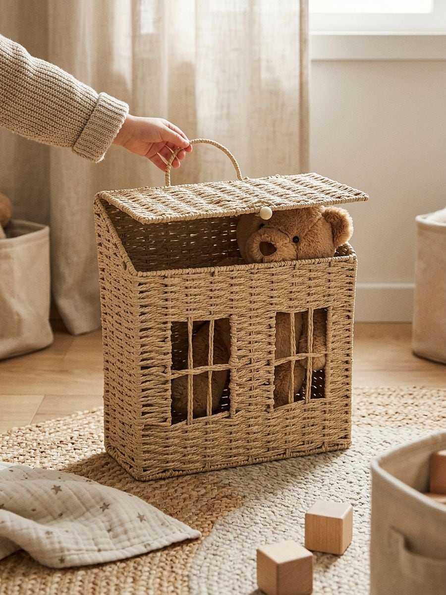 Coș de depozitare împletit în formă de casă