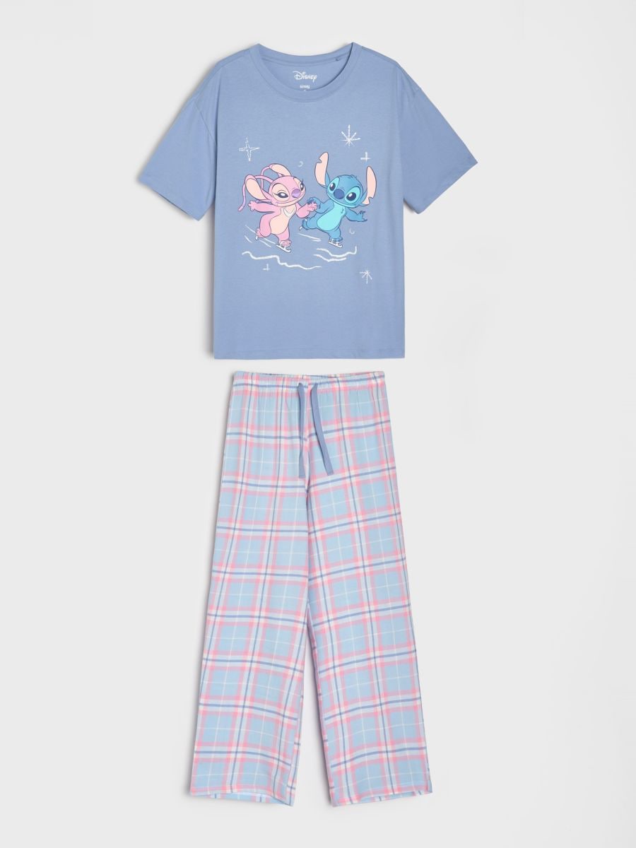 Pijama din bumbac în două piese cu imprimeu Stitch