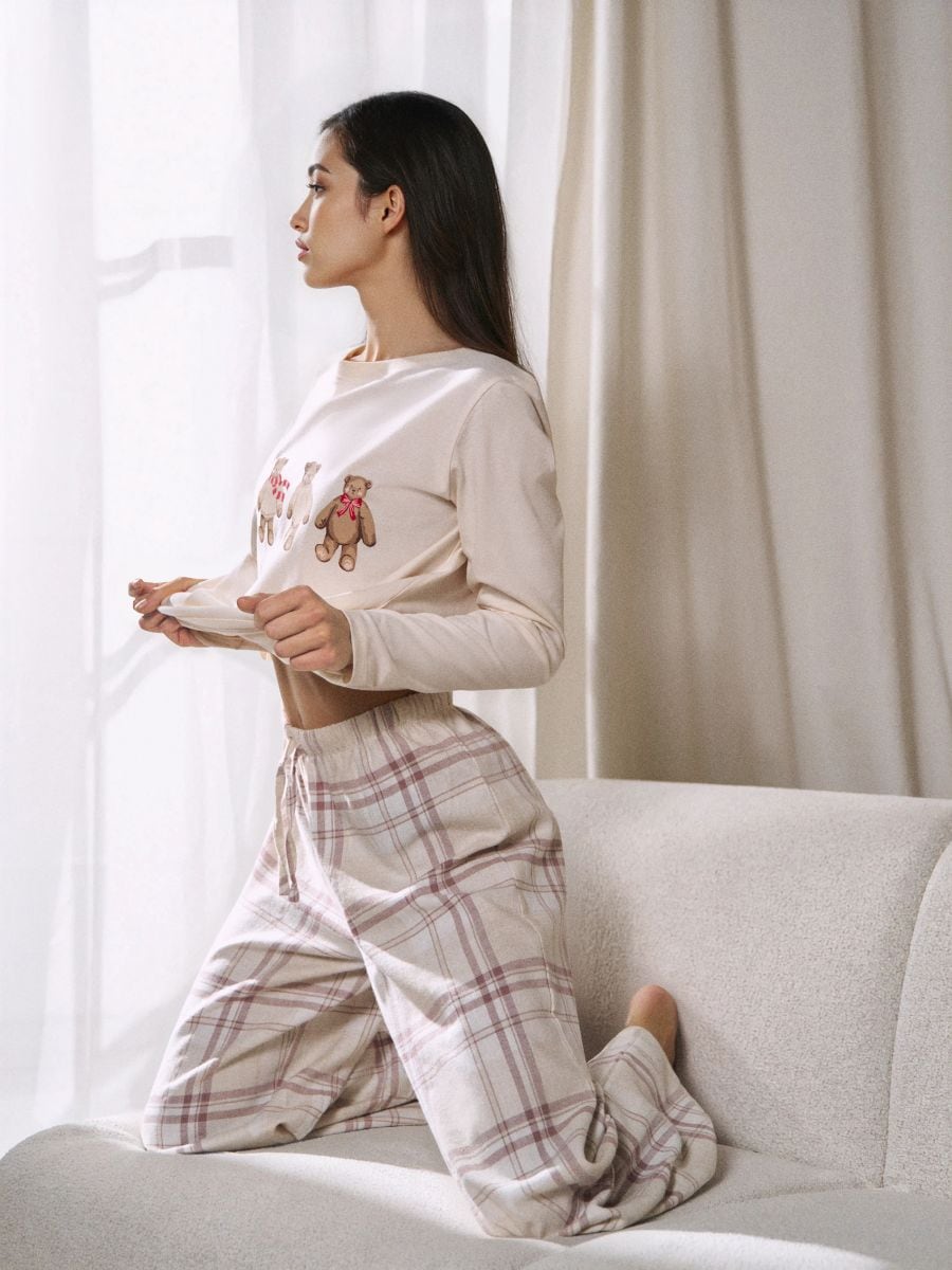 Pijamale din bumbac, două piese, cu imprimeu cu ursuleți
