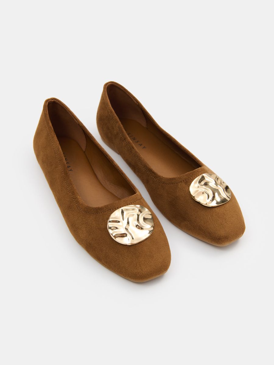 Balerina cipele od brušene kože sa dekorativnom zlatnom kopčom