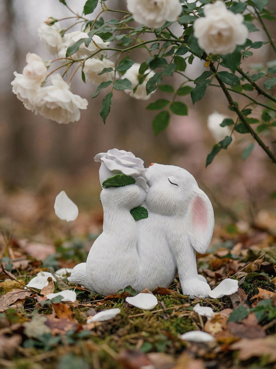 Baštenska dekoracija u obliku zeca sa cvetom