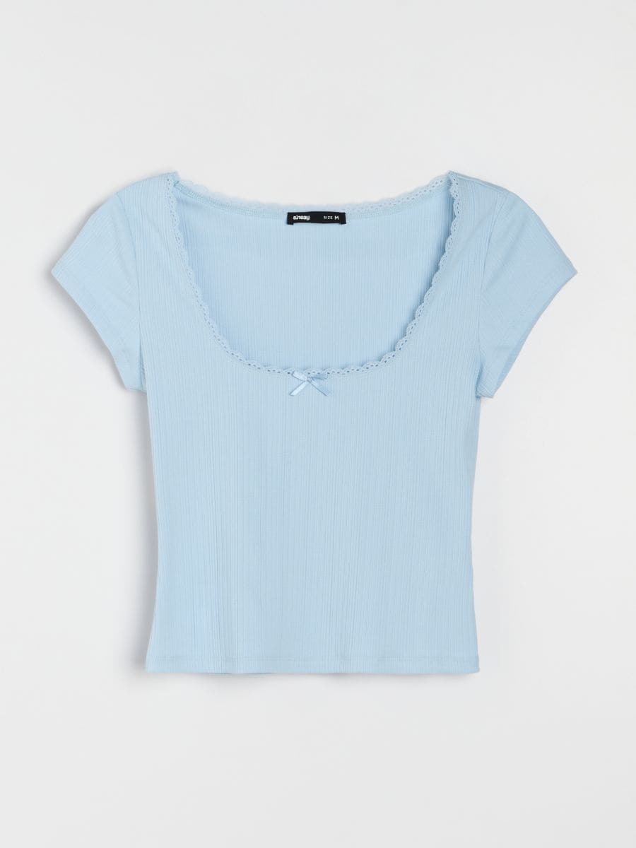 Bluza sa čipkom na dekolteu sa dodatkom viskoze
