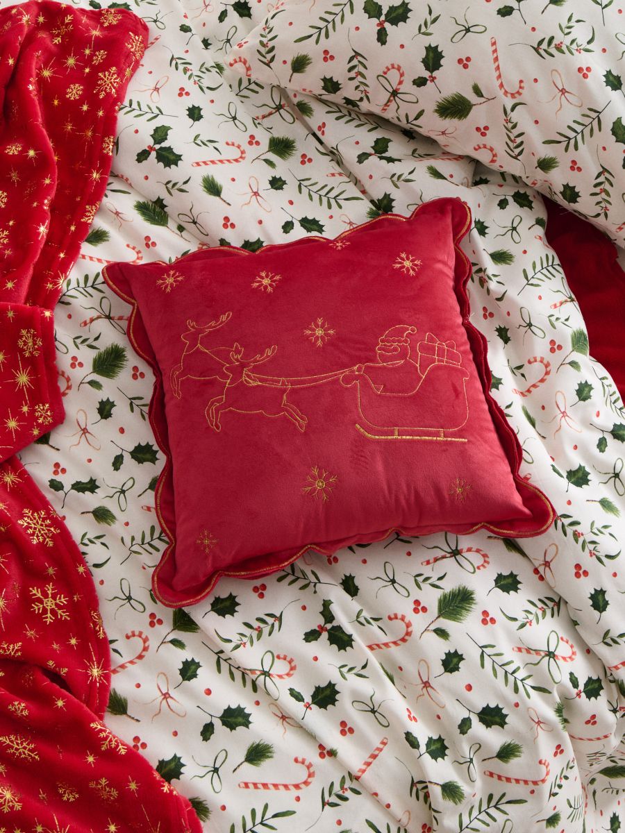 Božićna jastučnica sa izvezenim Deda Mrazom i irvasima