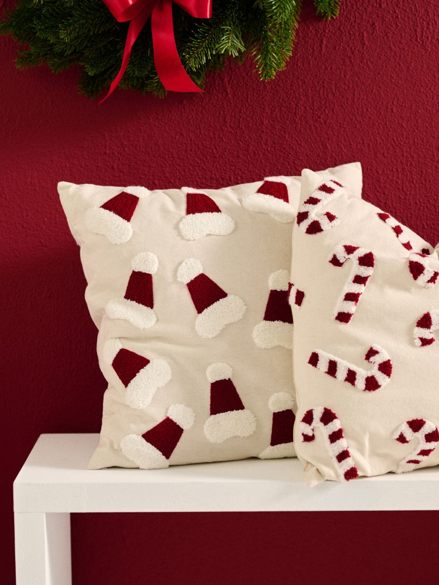 Božićni jastuk s izvezenim kapama Deda Mraza