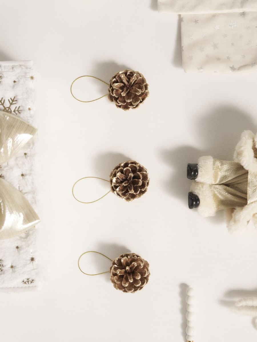 Božićni viseći ukrasi u obliku šišarki sa zlatnim završetkom, pakovanje od 12 komada