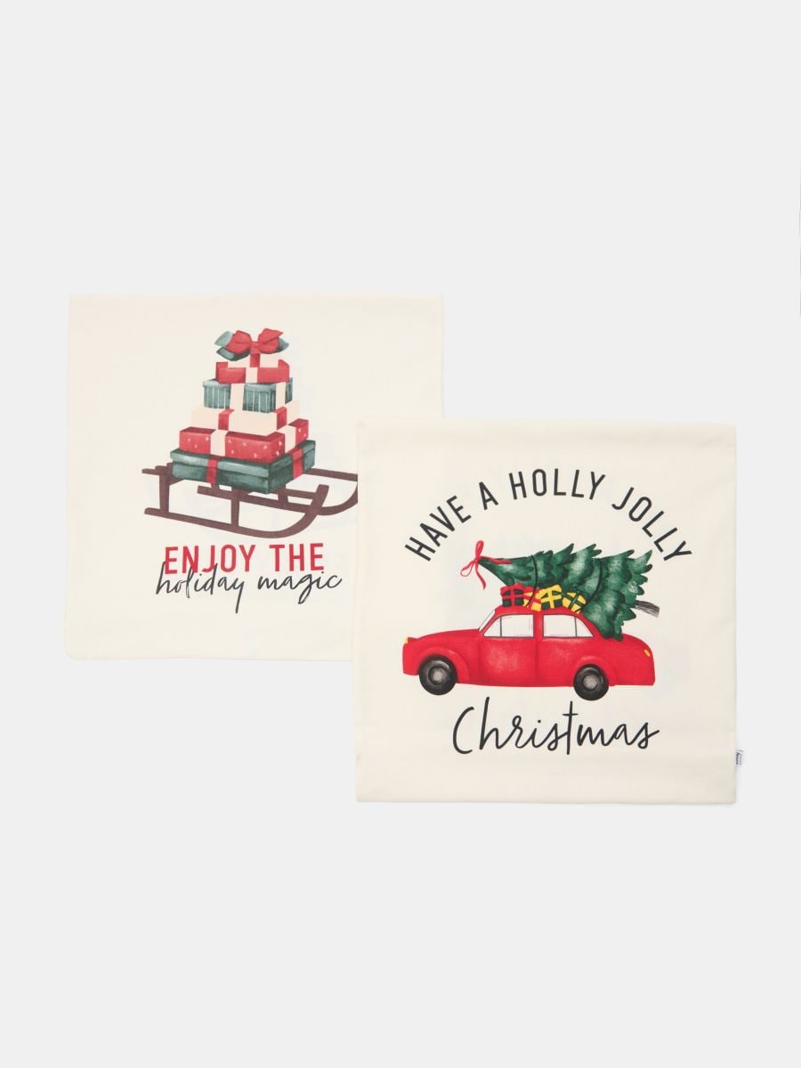 Božićne jastučnice s printom poklona i auta s jelkom (pakovanje 2)