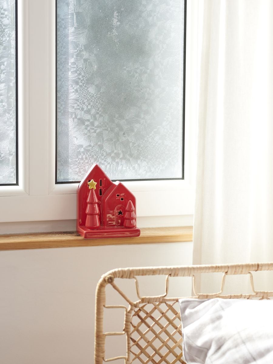 Keramička božićna dekoracija u obliku kuće sa drvca