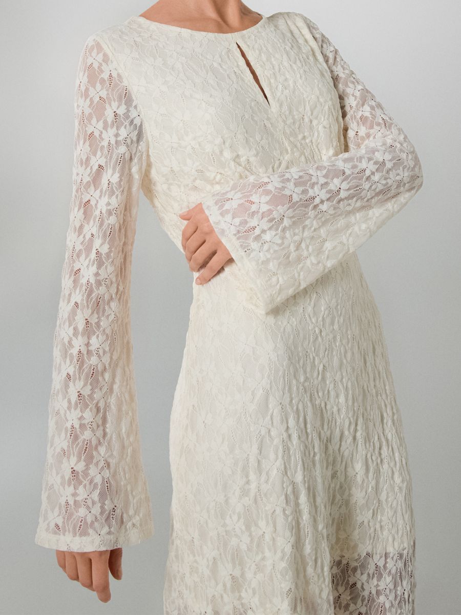 Maxi haljina od čipkane pletenine sa proširenim rukavom