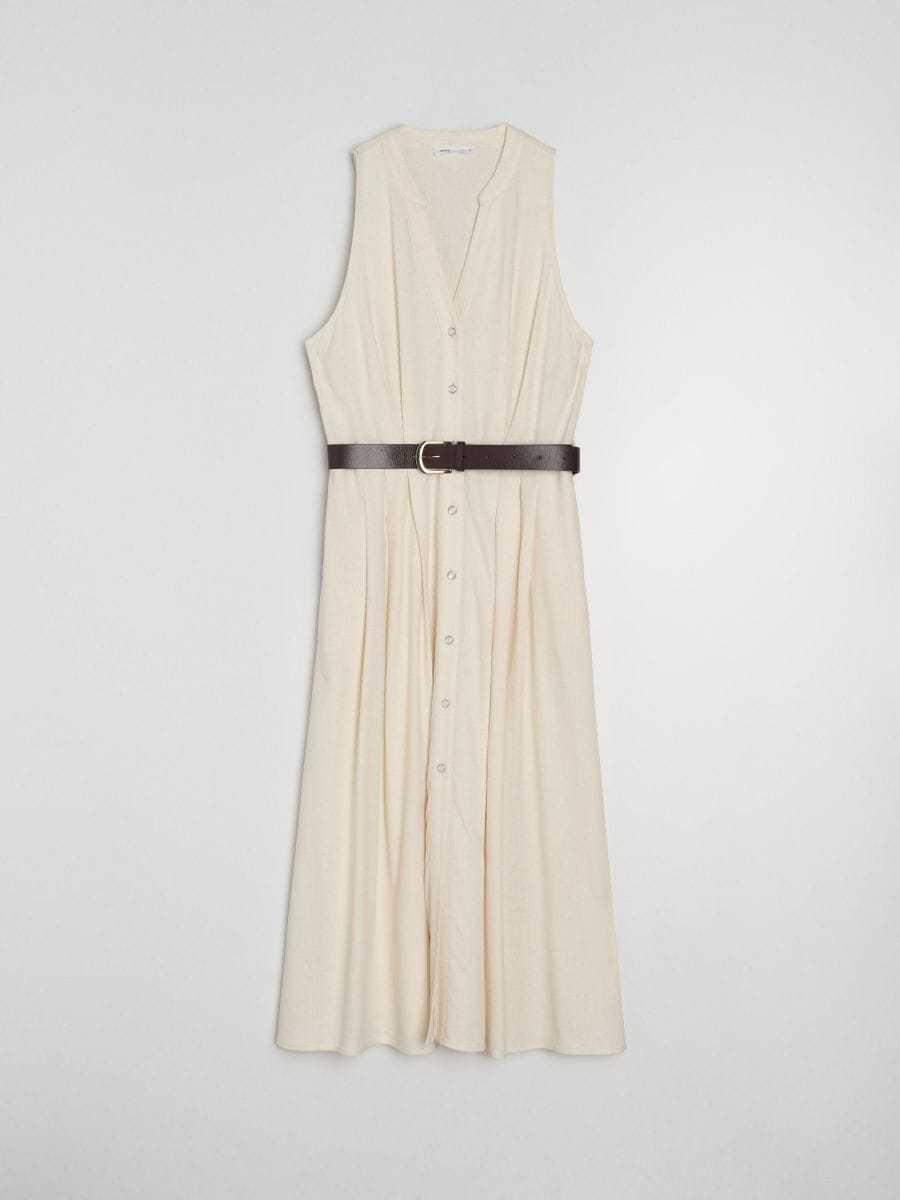 Midi haljina košulja bez rukava sa pojasom